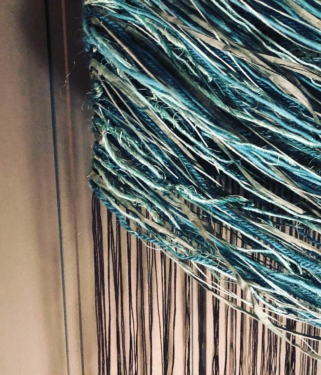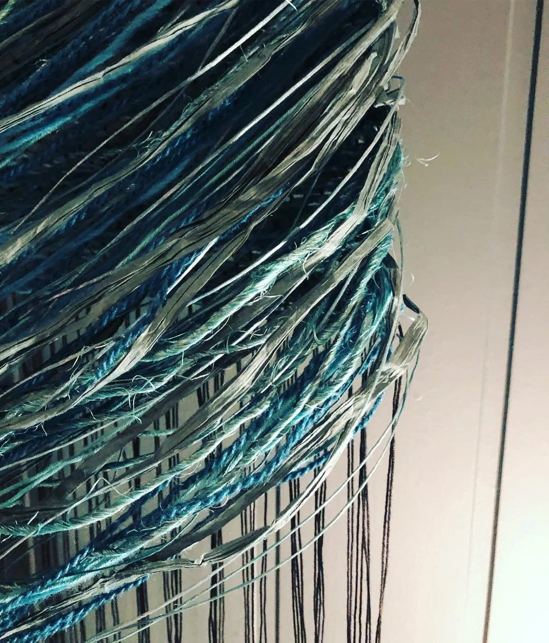 Commission for the restaurant Aske. A handwoven celebration of the ocean green color - in a monochromatic spectre. There is so much one can see, glossy&matt, paper&wool, thin&thick, smooth&rough. If your are around in the area, book a table and Take your time to explore it, and endulge yourself in Nordic fine Viking dining